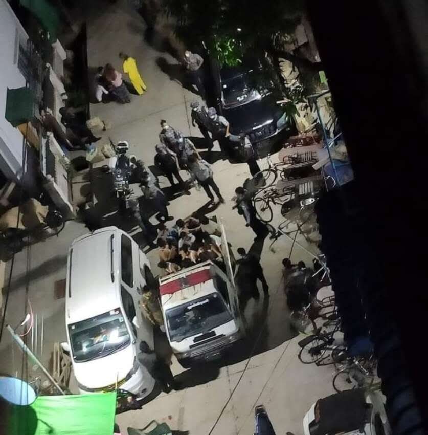 ဓာတ်ပုံ – ၂၀၂၁ ခုနှစ် စစ်အာဏာသိမ်းစ ညအချိန် ရပ်ကွက်များအတွင်း စစ်တပ်က ပြည်သူများကို ရှာဖွေဖမ်းဆီးခဲ့စဉ်။ (ပုံအဟောင်းဖြစ်ပါသည်။)