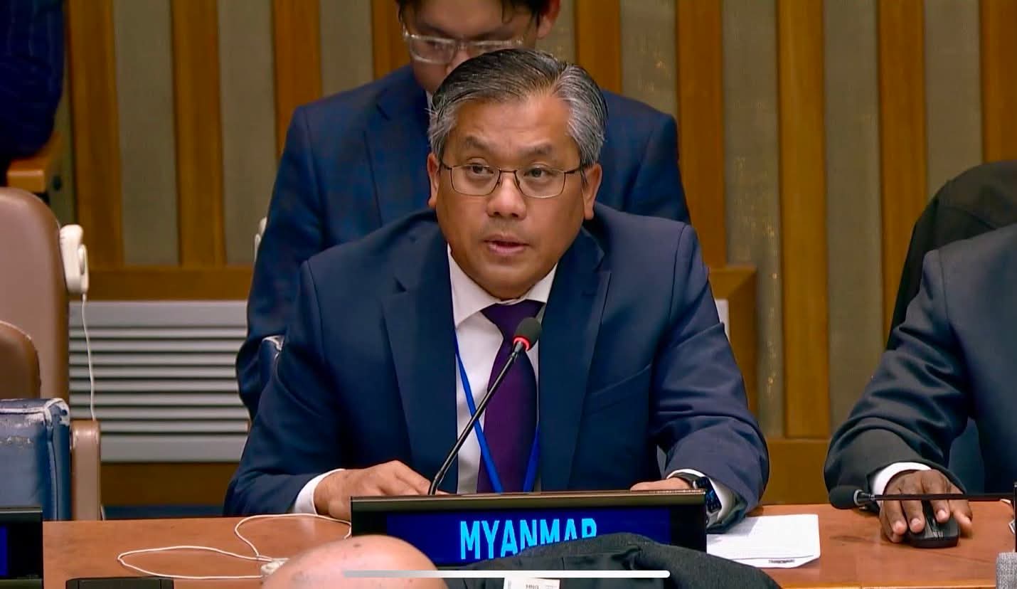 မြန်မာနိုင်ငံမှ တိုင်းရင်းသားလူနည်းစုများအပါအဝင် အရပ်သားပြည်သူများအပေါ် ပစ်မှတ်ထားတိုက်ခိုက်နေ၍ မြန်မာစစ်အုပ်စုထံသို့ လက်နက်ရောင်း ချမှု နိုင်ငံတကာက ပိတ်ပင်ပေးရန် ကုလသမဂ္ဂဆိုင်ရာ မြန်မာအမြဲတမ်းကိုယ်စားလှယ် သံအမတ်ကြီးဦးကျော်မိုးထွန်းက ထပ်မံတောင်းဆိုလိုက်သည်။