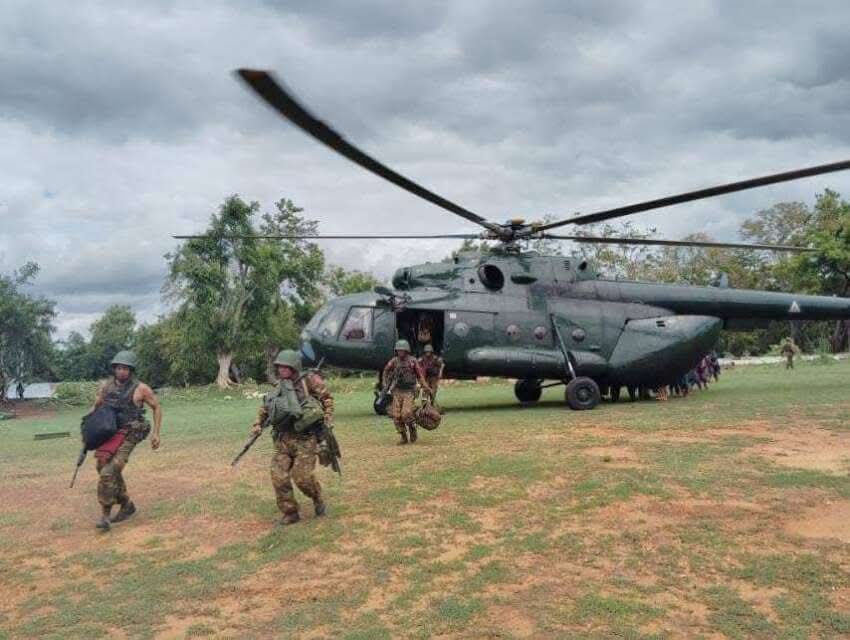 ဓာတ်ပုံ – အကြမ်းဖက်စစ်တပ်က Mi17 ရဟတ်ယာဉ်ဖြင့် စစ်အင်အားဖြည့်တင်းနေစဉ်။ (ပုံအဟောင်းဖြစ်ပါသည်။)